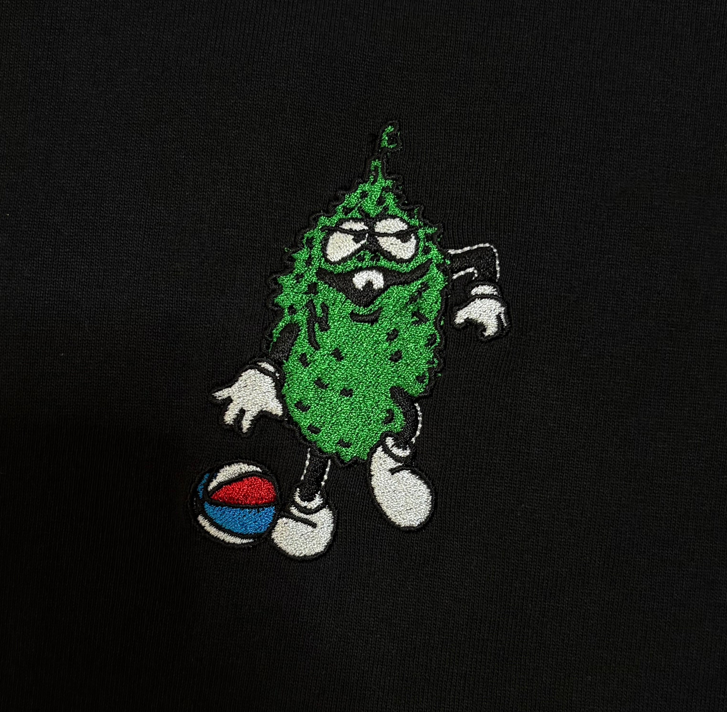 沖縄名物のゴーヤーのキャラクターが沖縄で大人気のバスケを可愛くカッコよく刺繍にて仕上げています。ワンポイントのロゴなので、シンプルで合わせやすいデザイン。